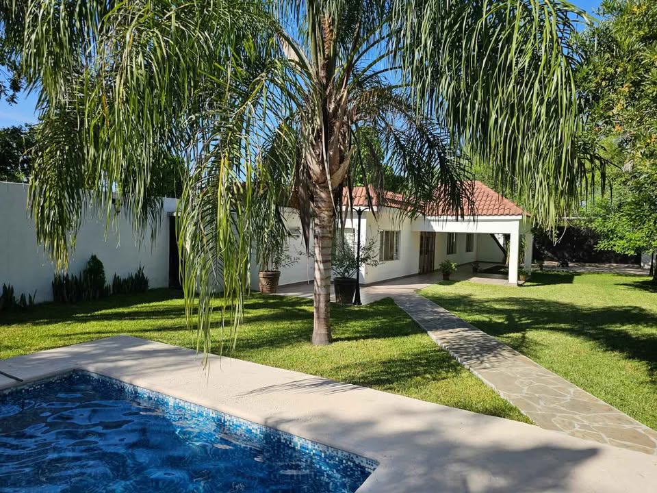 Cuenta con: Tiene una Alberca que mide 4 metros de ancho por 9.50 metros. Una Palapa de 6.20 m de ancho por 10.20 m de largo, tiene una barra de 4.20 de largo por 75 de ancho, junto con una área de donde va la tarja, mide 3.30 de largo por 63 ancho.